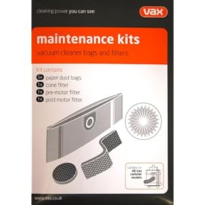 Vax Canister Maintenance Kit for use with all Vax Multifunction Canisters. Contains essentials for care of your Vax Canister. Regularly maintaining and replacing filters reduces allergies and dust emissions, prolonging the life of your machine. Replace bags frequently for optimum suction and cleaning performance.